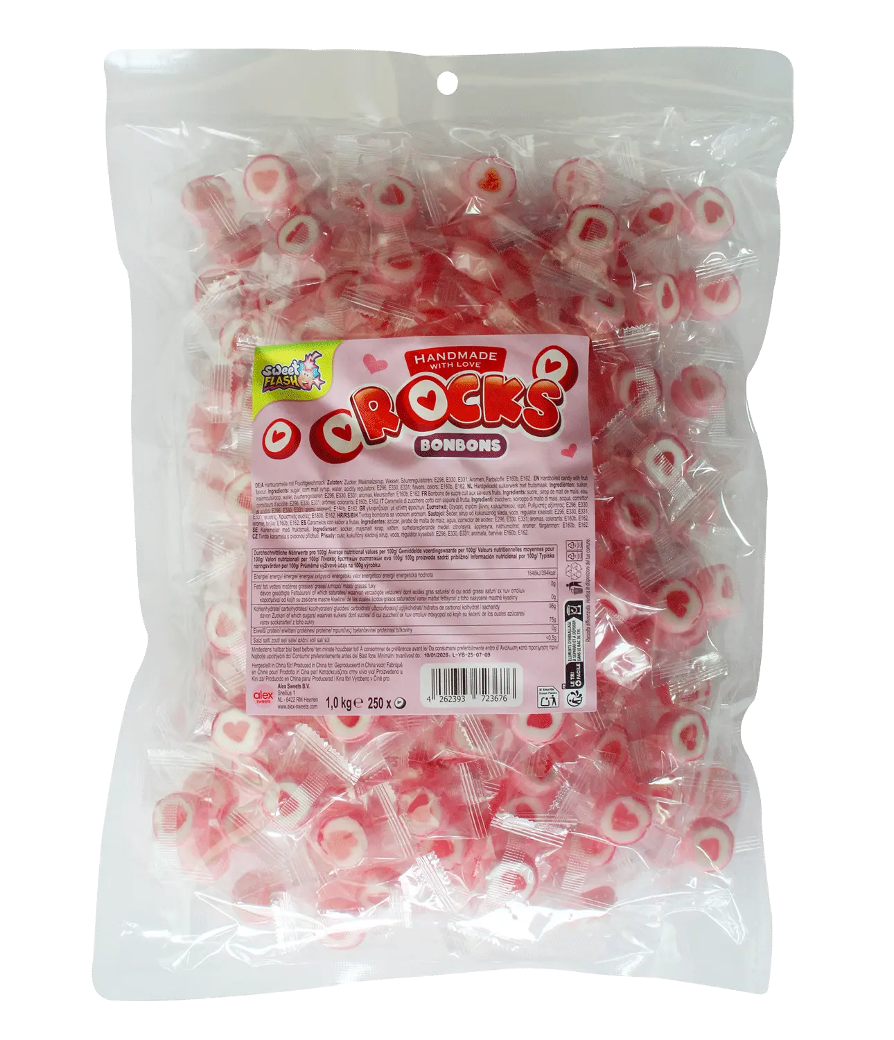 In the retail sector, Rocks Hearts are a real must-have: colourful, original and guaranteed to catch the eye on the confectionery shelf!